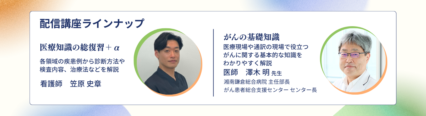 医療通訳や通訳研修の現場で役立つ、がん医療の基礎知識をわかりやすく学ぶ内容です。
